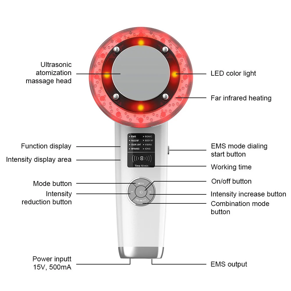Through the short-distance current flow, energy and heat are generated in the flowing part, promote skin circulation and massage, and introduce nutrients.